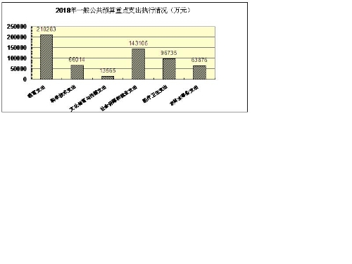 2018年一般公共預算支出922137萬元,完成預算的 ?105.7%,同比增長1%。轉移性支出384110萬元,其中:上解支出227345萬元、援助其他地區支出1282萬元、地方政府一般債務還本支出40950萬元、安排預算穩定調節基金75000萬元、結轉下年支出39533萬元。支出合計1306247萬元。
