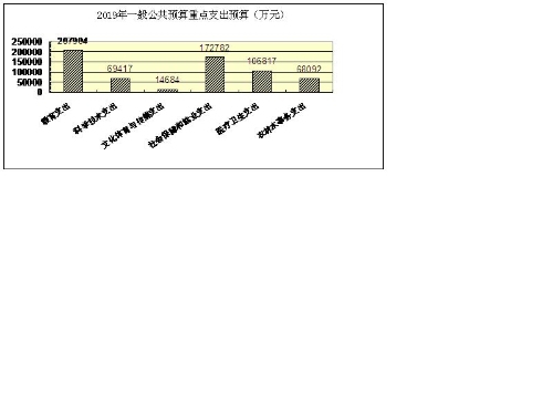 2019年一般公共預算支出989832萬元,比上年執行數增長7.3%。轉移性支出247835萬元,其中:預計上解支出242345萬元、援助其他地區支出5490萬元。支出合計1237667萬元。