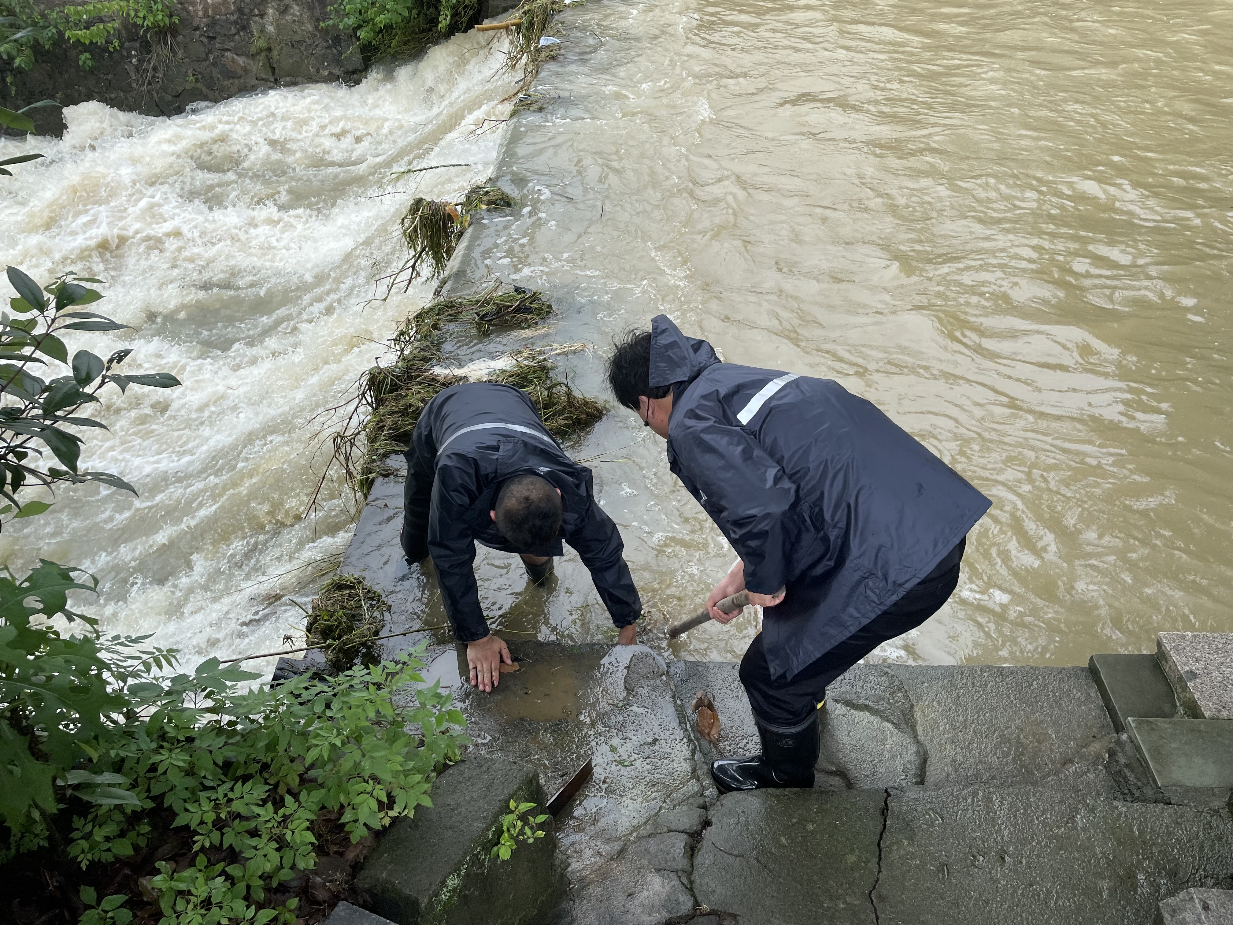 用責(zé)任使命構(gòu)筑防臺(tái)屏障,用黨員力量保衛(wèi)平安家園。為預(yù)防山洪地質(zhì)災(zāi)害,諸暨市大唐街道上下文村平安志愿隊(duì)伍、村兩委、人大代表、黨員干部聯(lián)合出動(dòng),24小時(shí)巡查黃家、養(yǎng)馬塘兩個(gè)重要山塘和小型水庫(kù)洪豐水庫(kù),加緊加急轉(zhuǎn)移下游危房住戶。為保障蕾山溪泄洪暢通,上下文村黨總支書(shū)記、諸暨市人大代表?xiàng)钇呙骱椭瘲钣律骐U(xiǎn)處理石門上堵塞的樹(shù)枝枯草,提升泄洪能力,極大地降低的臺(tái)風(fēng)帶來(lái)的洪水風(fēng)險(xiǎn)隱患。