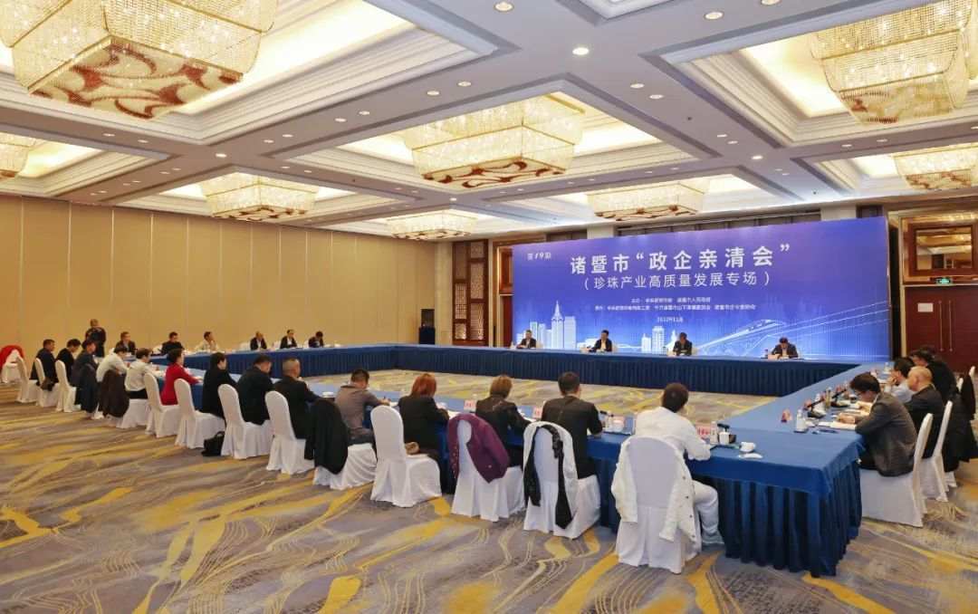 11月28日下午,我市舉辦第十九期“政企親清會”,就珍珠產業高質量發展進行專題會商。紹興市委常委、諸暨市委書記沈志江出席并講話。市領導王琤、陳文進參加。