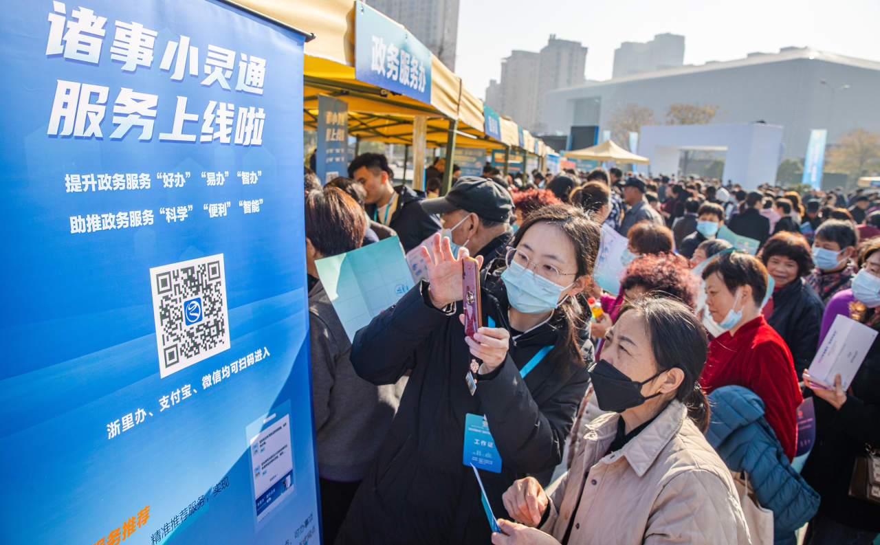 啟動儀式現場,紹興市政務服務辦、諸暨市政務服務辦牽頭實施的子活動——惠企利民政策市集以“政策咨詢、服務體驗、游園打卡”形式,吸引了許多市民朋友們前來“趕集”打卡。現場共有17個系統部門展位和政務公開展位,為市民朋友們開展了戶籍管理、社保醫保、就業保障、藥品監管、養老救助、入學升學、城市管理等方面政策的宣講解讀,并現場提供農產品快檢、法律、金融、稅務、水、電、氣等政務服務。
