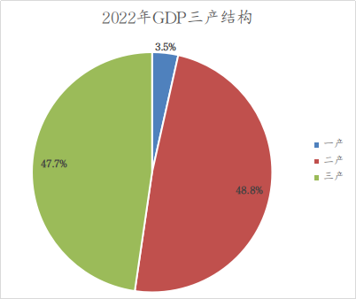 初步核算,2022年全市實現地區生產總值(GDP)1658.84億元,按可比價格計算,比上年(下同)增長4.6%。其中,第一產業增加值57.54億元,增長3.4%;第二產業增加值809.28億元,增長5.2%;第三產業增加值792.02億元,增長4.1%。按戶籍人口計算,全市人均生產總值為153884元,增長4.9%,按2022年平均匯率1:6.726折算為22879美元。三次產業增加值結構為3.5:48.8:47.7。