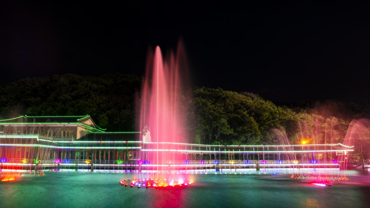 ? ? ? ?沉香湖的美不僅在湖,也在于山、水之靈氣,江南山水之靈氣,匯萬泉而聚川為海,云靄蒸騰,飛瀑流泉。溪水清涼潤澤,碧綠透明,那水跌落碇步,發出清脆的叮叮聲,綻放出無數潔白的珍珠,美矣!環繞沉香湖,南有斗巖風景區,北有西天寺,它們像眾心拱月一樣,捧出沉香湖這顆明珠。山的高度都不超過500米,但峰奇石秀,林泉幽美,水靈人杰。東南高峰遙相對峙,高插云霄。沉香湖的美,在于晴中見瀲滟,雨中顯空蒙。無論雨雪晴陰,在落霞、煙霧下都能成景;在春花,秋月,夏荷,冬雪中各具美態。另外還有魔幻世界、夜游燈光秀、水上音樂噴泉等很多亮點景致。