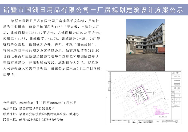 諸暨市國洲日用品有限公司一廠房規劃建筑設計方案公示