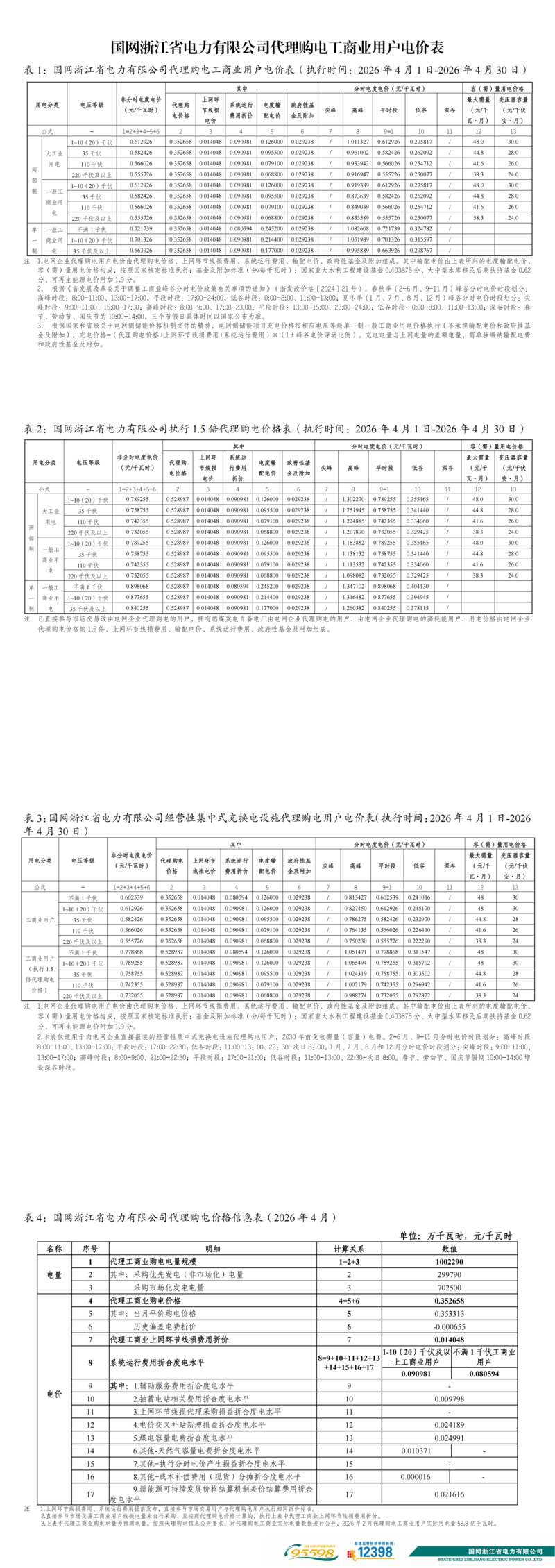 呈國網浙江省電力有限公司關于2026年4月代理工商業用戶購電價格的公告