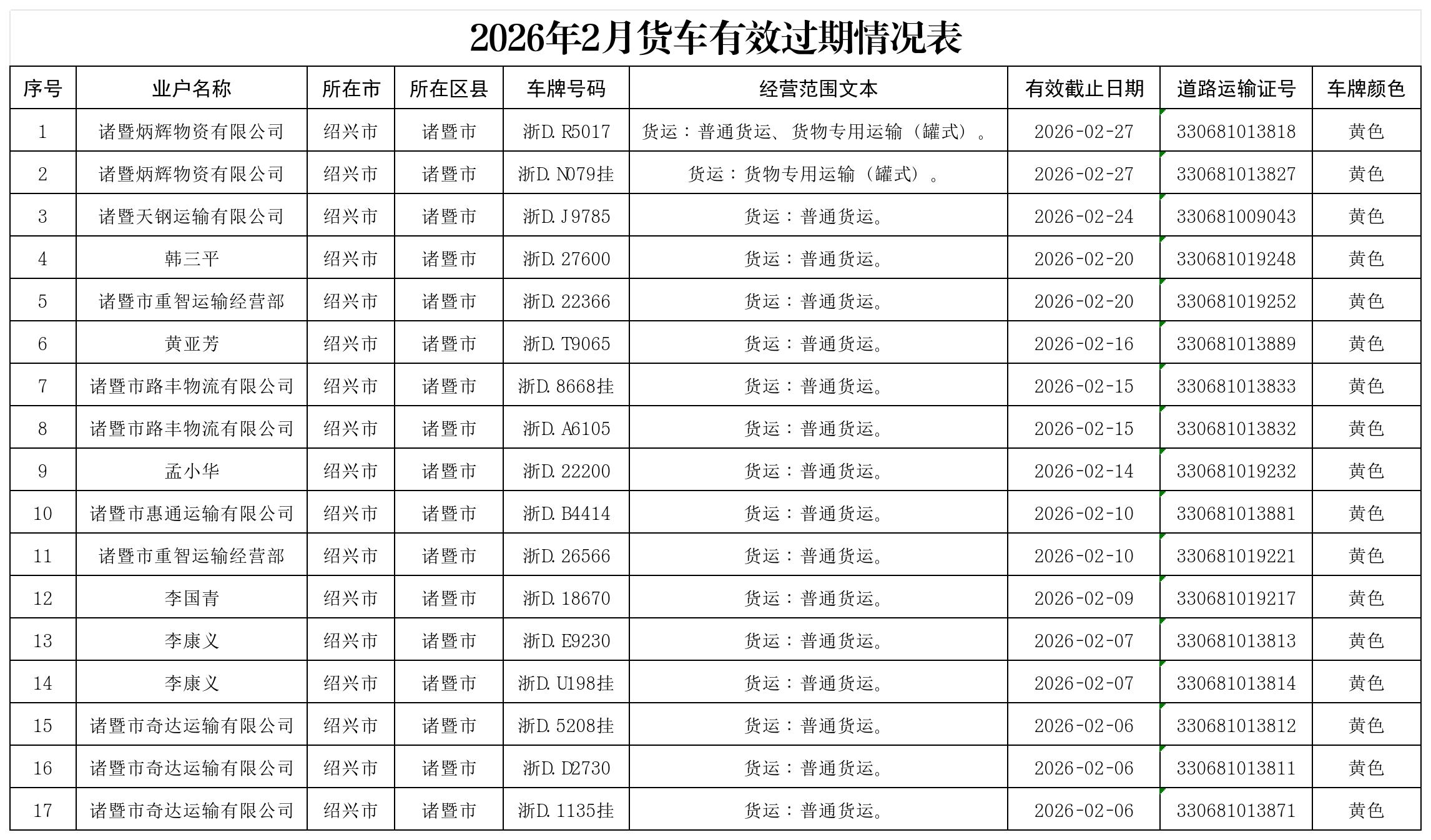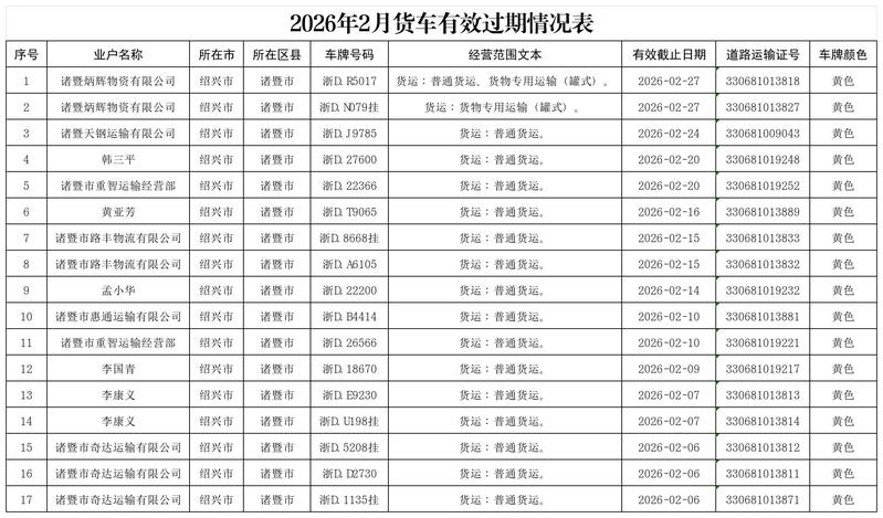 附件:2026年2月貨車有效過期情況表