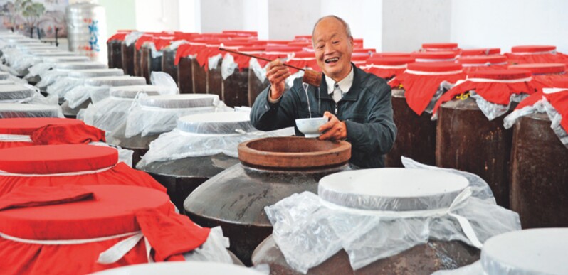 清香型白酒,因產(chǎn)地在浙江省諸暨市同山鎮(zhèn)而得名,素有“江南小茅臺(tái)”之稱。同山燒以諸暨特有的高腳拐糯高粱為原料,取同山鎮(zhèn)上汲龍水釀制而成,因地處盆地,常年恒溫窖藏,因此酒質(zhì)清澄,口感甘冽。