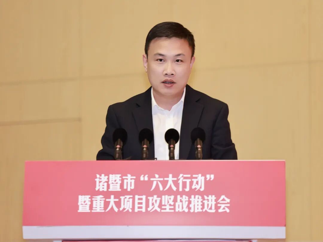 4月2日下午,我市召開“六大行動”暨重大項目攻堅戰推進會。紹興市委常委、常務副市長徐軍出席并講話。諸暨市委書記金進富主持會議。紹興市政府副秘書長孫梁,以及我市領導張昆侖、郭浩良、孟國鋒等參加。