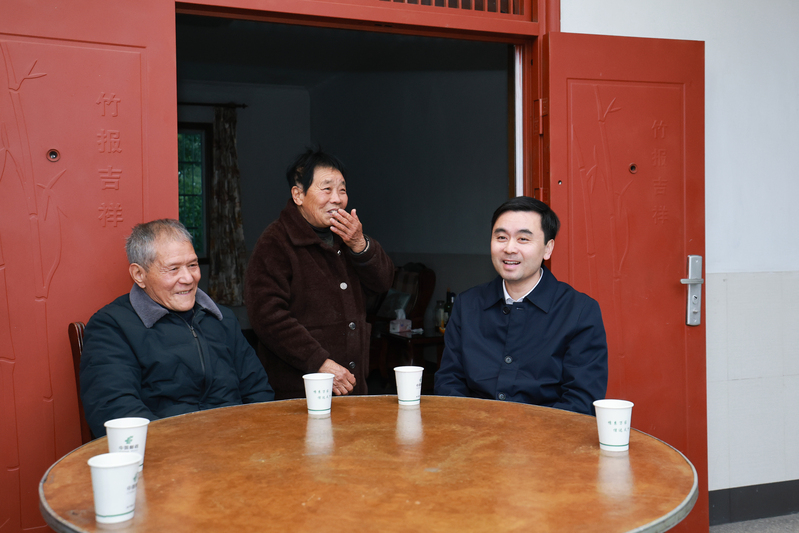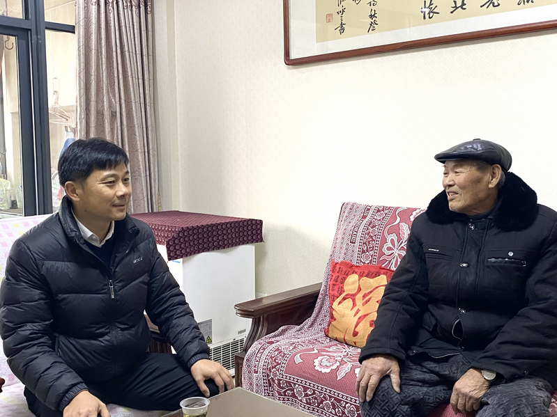 孟國鋒首先看望慰問了牌頭鎮下嶺腳村生活困難老黨員王仕華,今年78歲的王仕華黨齡55年,是一名退伍老軍人,因基礎疾病需要長期服藥,且妻子前幾年重病,外加兒子生意虧損破產,使得家庭經濟困難。孟國鋒仔細詢問生活中遇到的困難情況,寬慰他樂觀生活,同時囑咐鎮村干部多關心照顧,幫助解決實際困難,讓他們過一個安定、祥和的幸福年。隨后,孟國鋒來到義井村老黨員郭寶才家中。當天正值郭寶才老人92歲生日,孟國鋒向這位抗美援朝老兵送上誠摯的生日祝福,并叮囑在場鎮村干部要時常關心照顧老人,及時幫助解決實際困難。孟國鋒表示,老黨員是我們黨光輝歷程的見證者、參與者和奉獻者,要始終帶著感情、扛起責任,悉心照顧好他們的生活,讓紅色基因代代相傳、賡續弘揚。